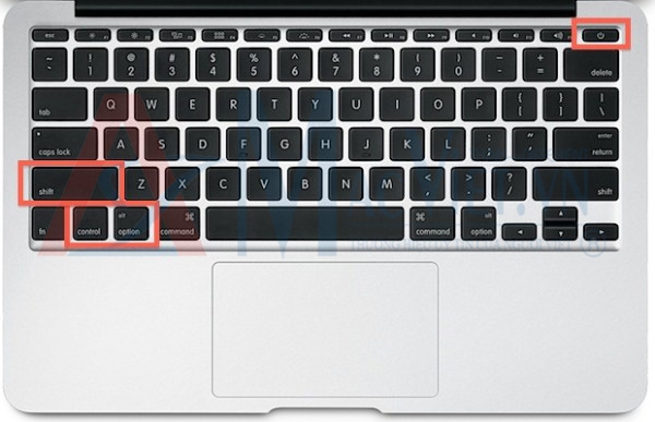 Đi cùng với dòng laptop MacBook Air, việc thiết đặt System Management Controller chỉ cần giữ nút nguồn cộng với việc ấn tổ hợp phím Shift + Control+ Option cùng thời điểm nên kết nối lại SMC cho thiết bị Macbook.